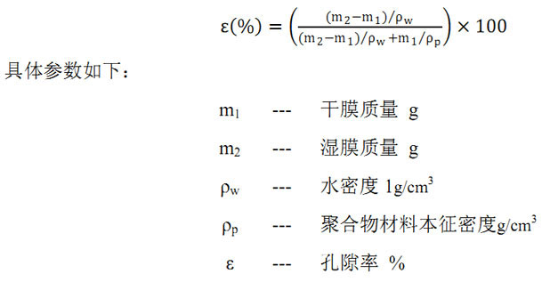 2. 稱重法:由于PTFE材料疏水性強,該方法測試時,微小的顫動會使PTFE中空纖維膜孔內的水被甩出,導致測試存在較大的誤差。因此,多數研究者采用稱重法計算PTFE中空纖維膜的孔隙率。具體操作如下: