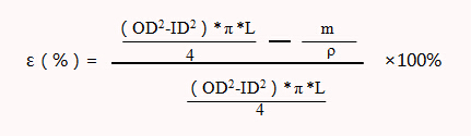 用無水乙醇將PTFE中空纖維膜清洗干凈,放入烘箱50度下干燥完全,干燥后裁量1米長膜絲用精密天平稱量,記錄中空纖維膜干膜重量m。稱重后膜絲截取一段樣品,在電子顯微鏡下測量膜絲內外徑,分別記錄為OD和ID。根據如下公式可計算出PTFE中空纖維膜的孔隙率。